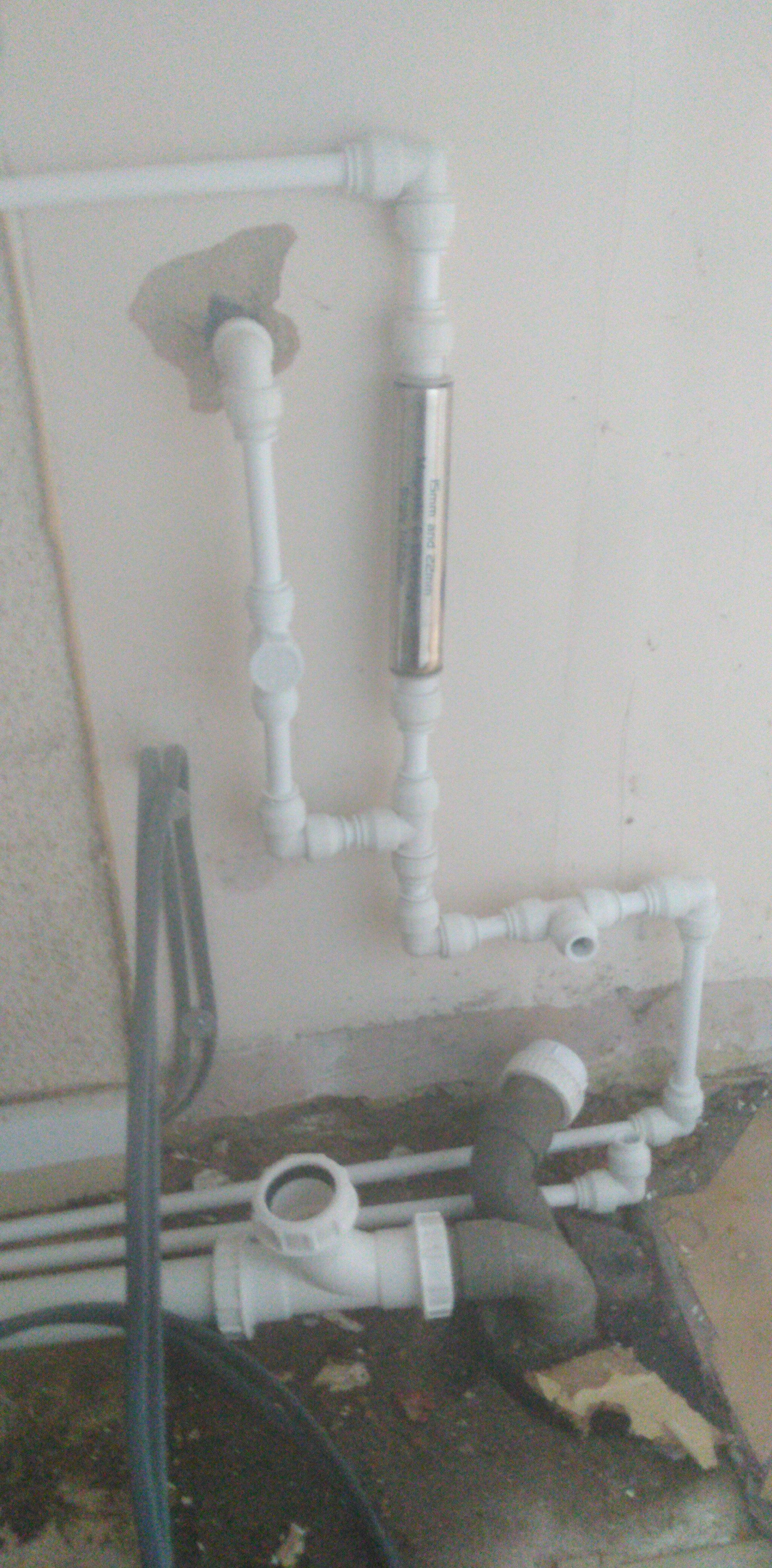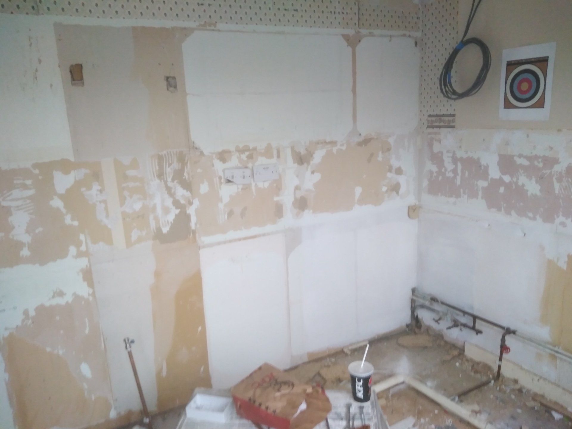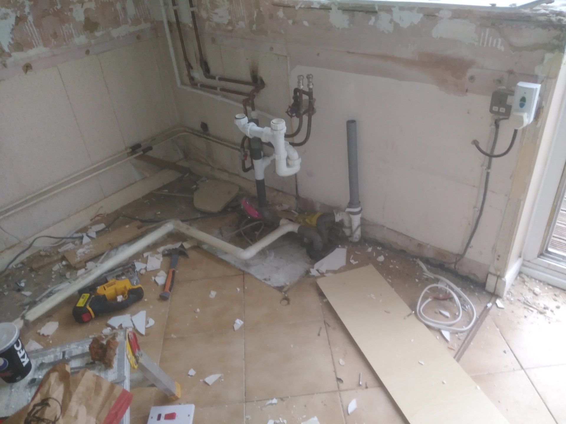 Once the old kitchen was removed the issues with the pipework and electrics were revealed. We removed all the old pipework back to the stopcock and boiler and the waste back to the outlet. The electrician 'first fixed' the kitchen and replaced the old fuseboard.