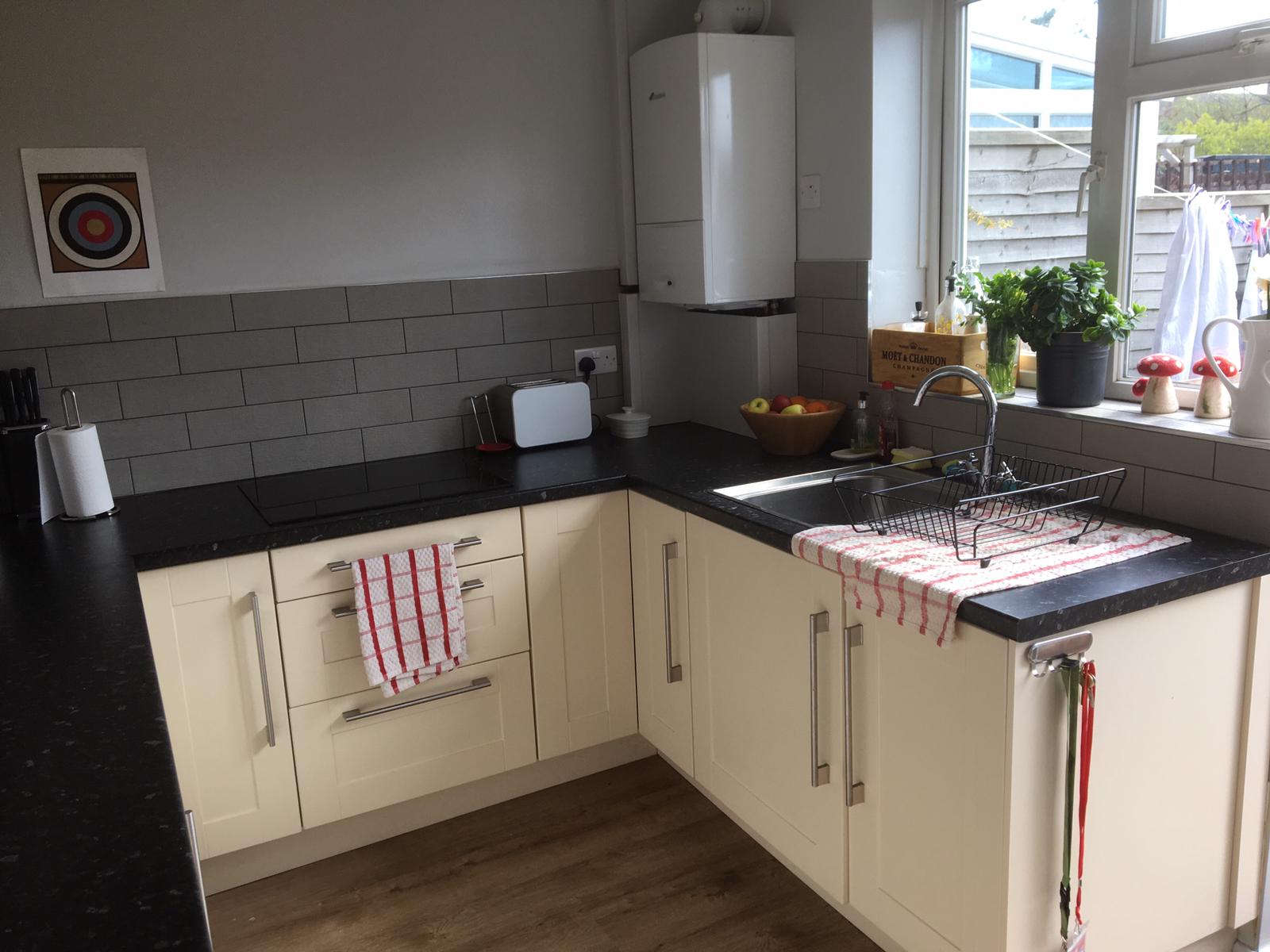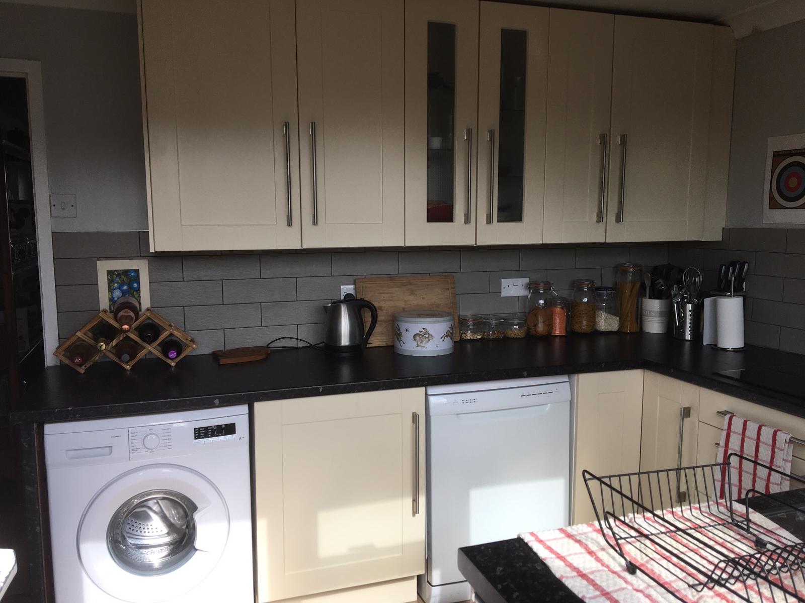 Once the new worktops arrived they were fitted along with the new sink, tap, hob and plinths. The dishwasher and washing machine were plumbed in and the tiler, decorator and electrician finished leaving the completed kitchen.