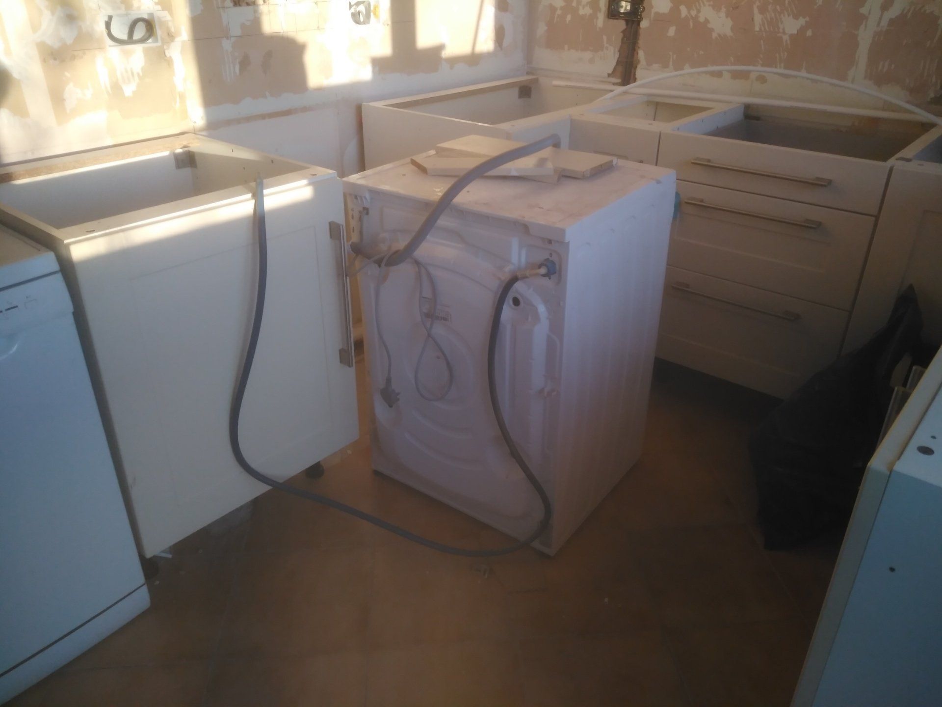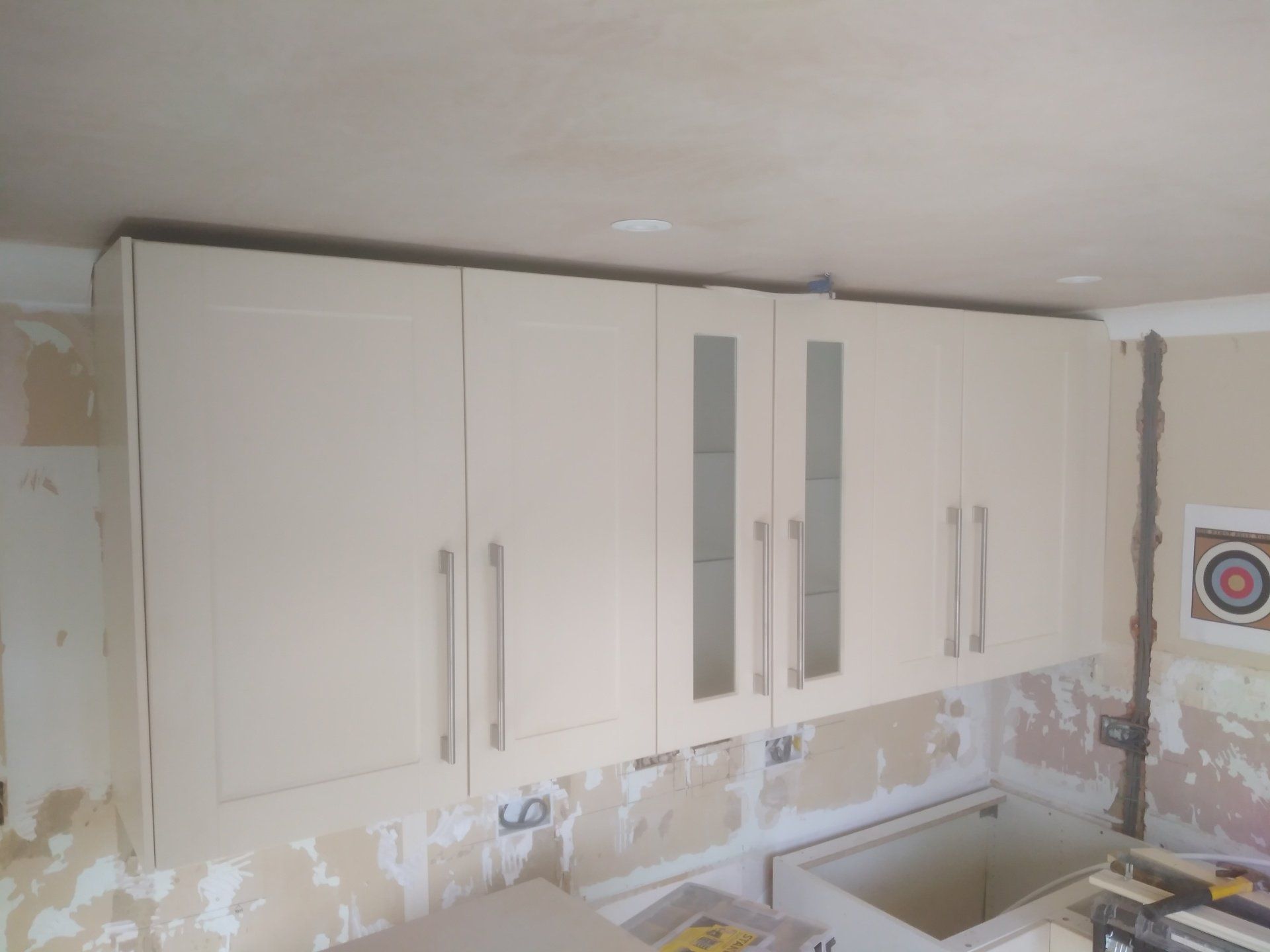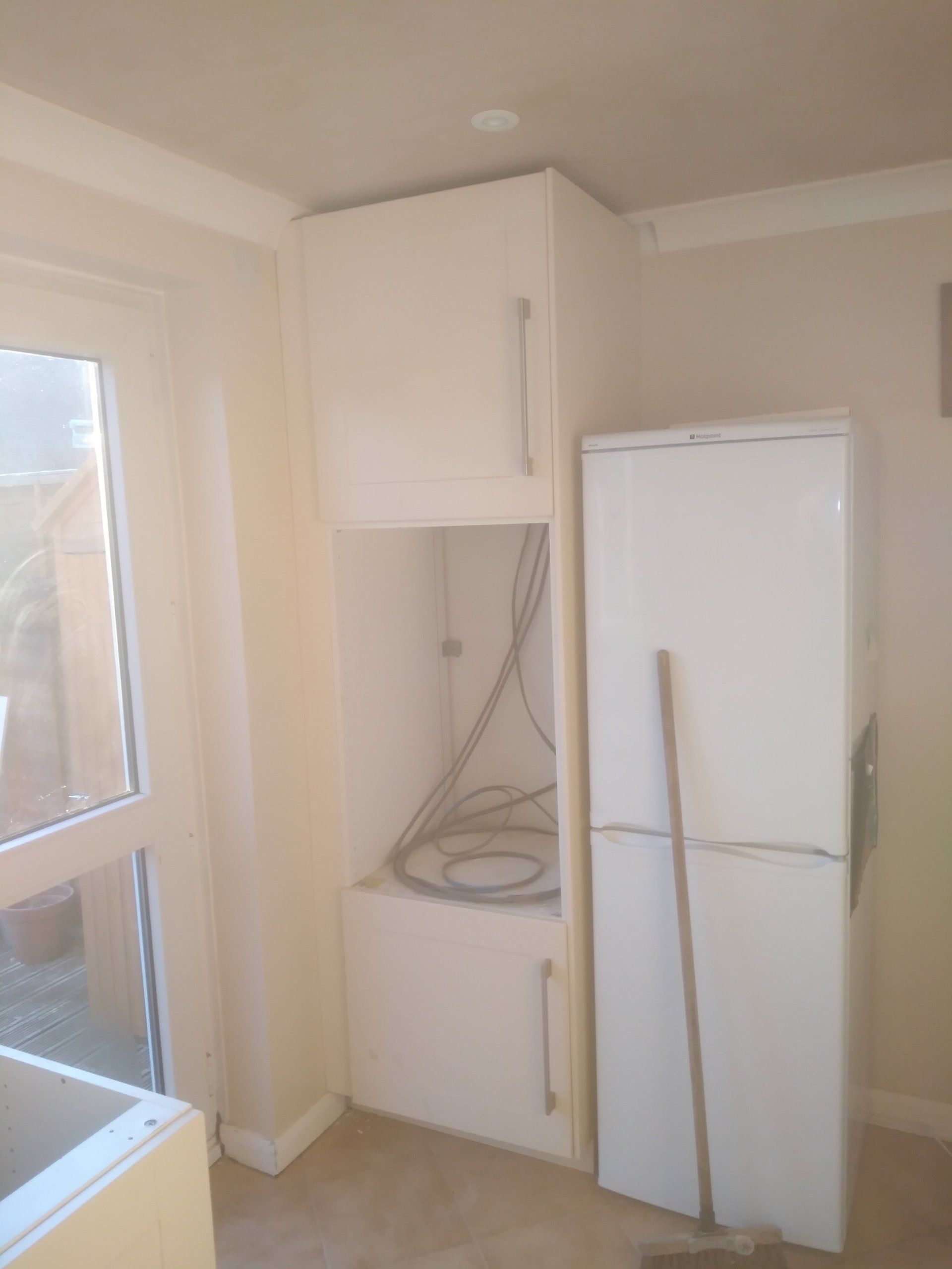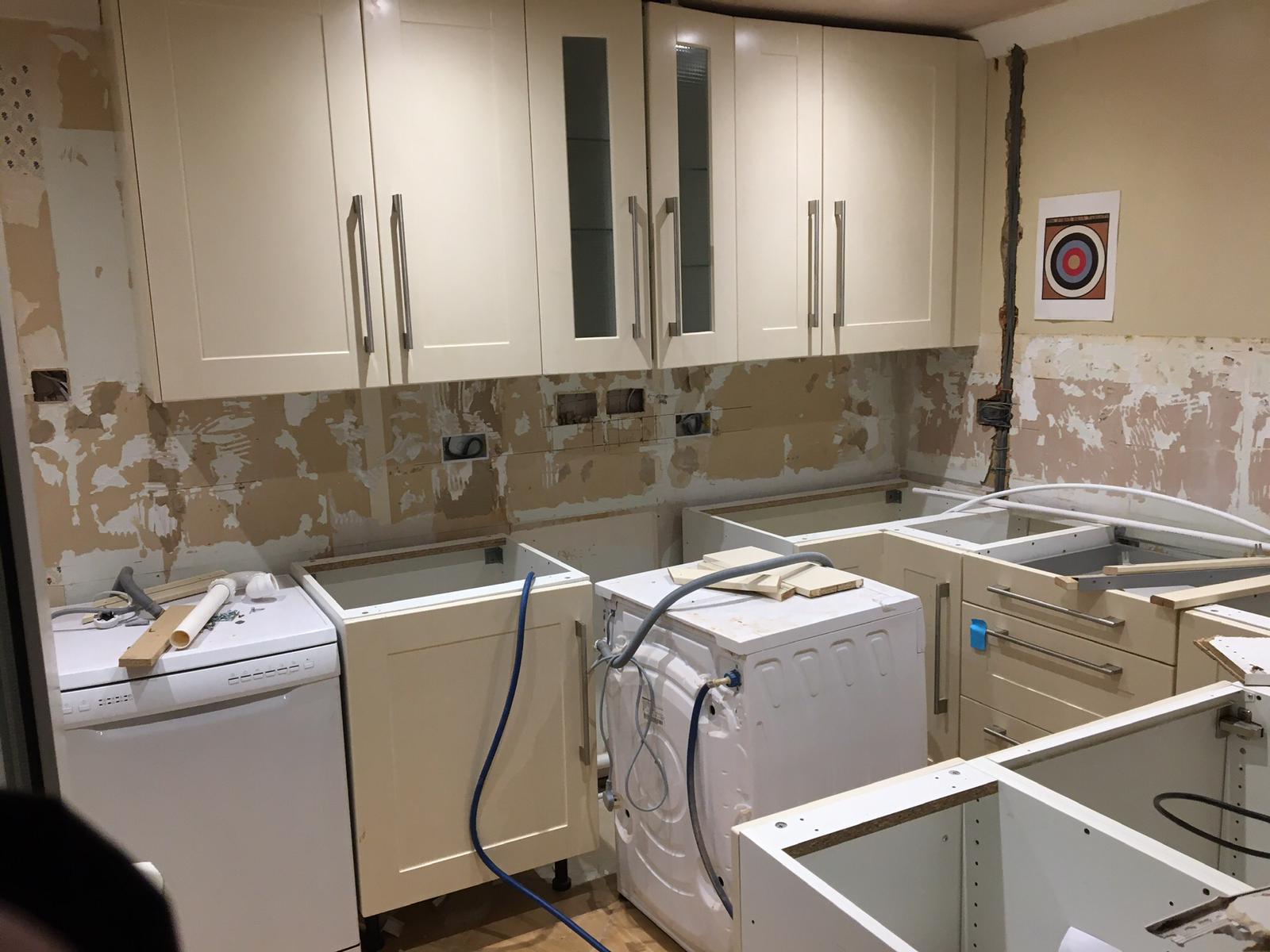New pipework was fitted to accommodate the new layout, existing boiler and external tap. Once this was done the kitchen units were fitted.