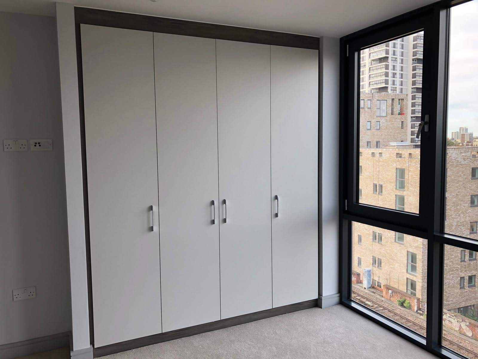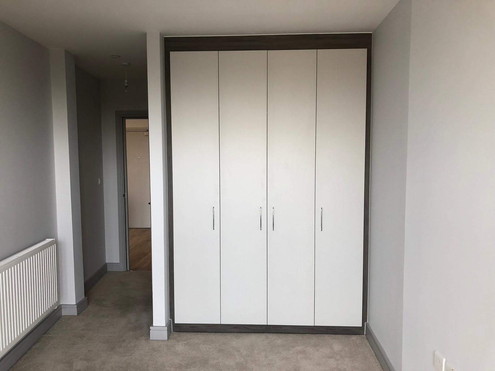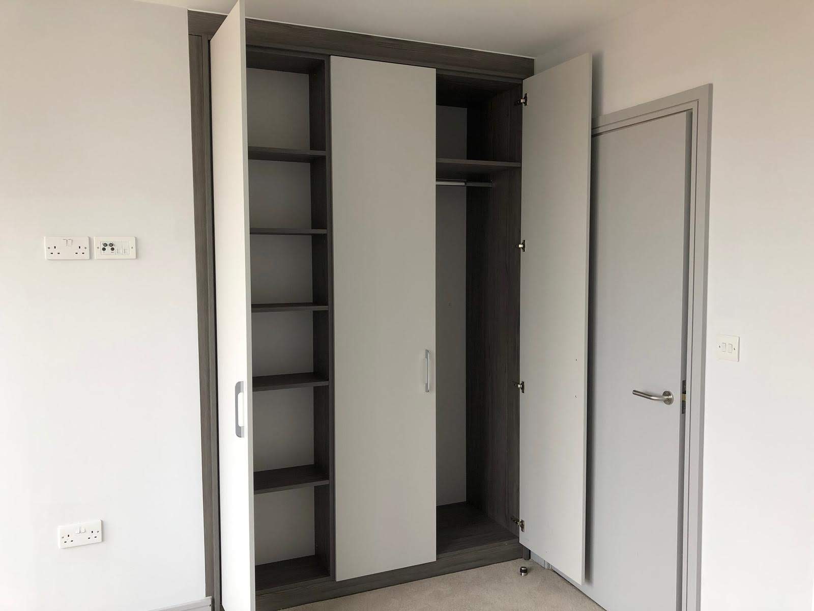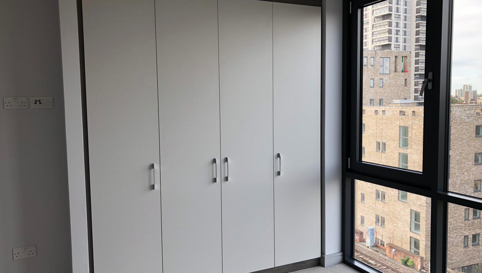 A selection of a few of the fourteen English bespoke wardrobes, each designed to specifically complement the space available.